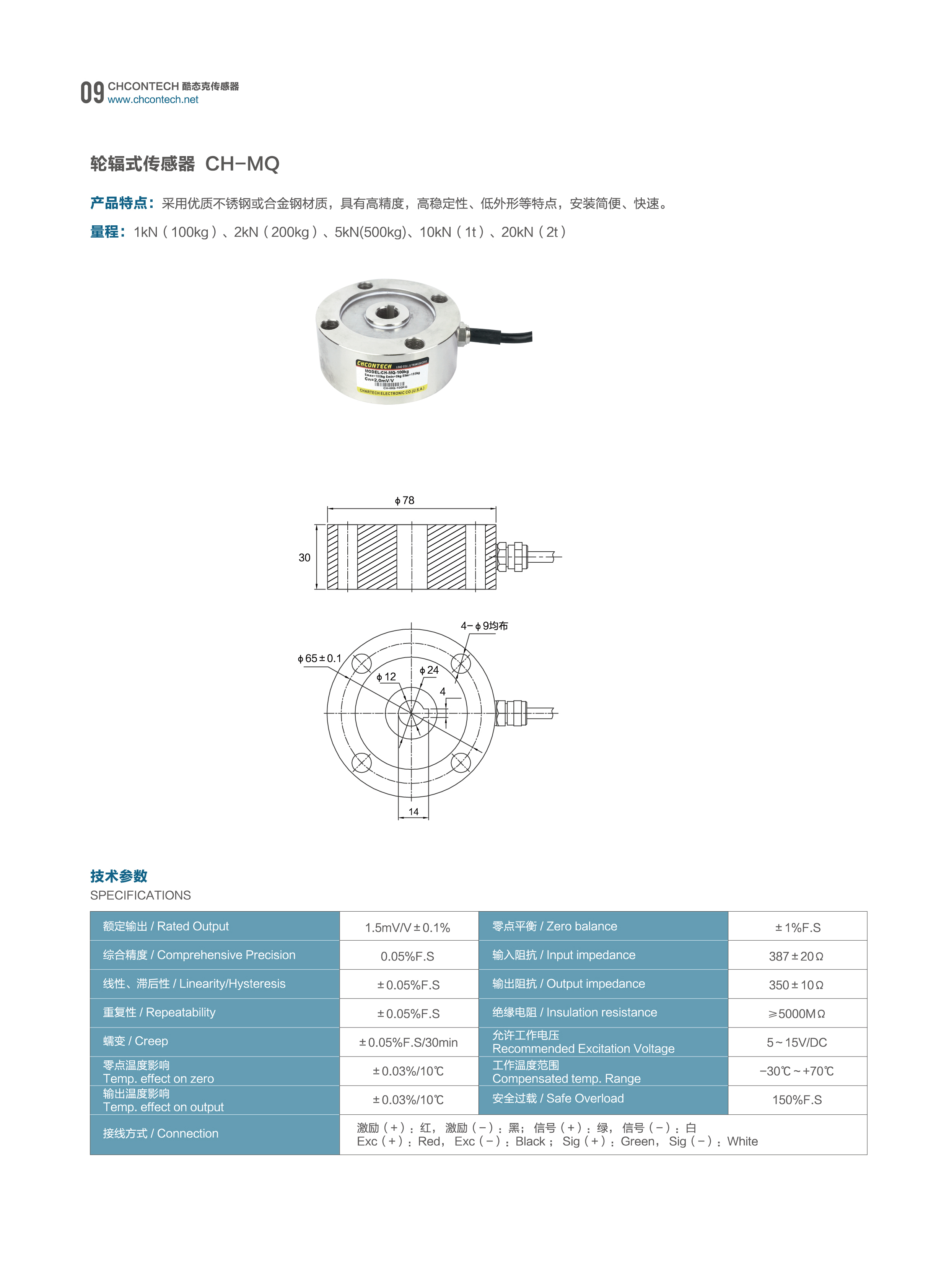 產(chǎn)品特點(diǎn):采用優(yōu)質(zhì)不銹鋼或合金鋼材質(zhì),具有高精度,高穩(wěn)定性、低外形等特點(diǎn),安裝簡(jiǎn)便、快速。 量程:1kN(100kg)、2kN(200kg)、5kN(500kg)、10kN(1t)、20kN(2t)