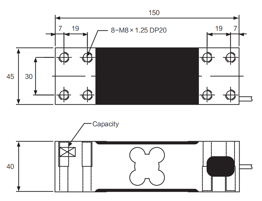 量程:600N(60kg)、1 kN(100kg)、1.5kN(150kg)、2 kN(200kg)、2.5kN(250kg)、3 kN(300kg)、5 kN(500kg)、8kN(800kg)